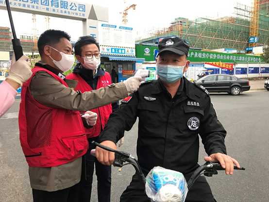 哪里需要哪里就有党徽闪亮,多次参加志愿服务的党员同志们,对于防疫驻点查验轻车熟路,很快的就进入了工作状态,了解村内人员情况、测量体温、信息登记等按流程进行。对于驻点的防疫工作人员,24小时的值守已经是家常便饭,各位党员同志的加入能够换来他们片刻间的休息,“你们先休息会,这些事我们来做!”、“谢谢各位老师,你们辛苦了!”这几句话时隐时现。虽然天空不作美,任务开始不久就飘起了小雨,寒风中大家瑟瑟发抖,但并没阻挡住党员同志的工作热情,三三两两组合,撑伞、测温、查验通行码,配合的非常默契。